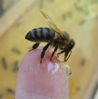 The other part of the plan was to put syrup in a Styrofoam feeder and set it out on the robbing table.